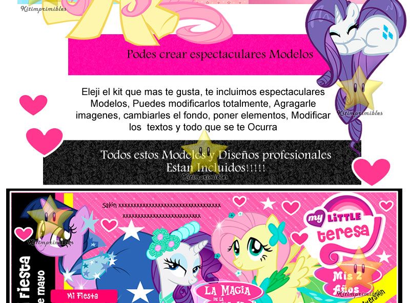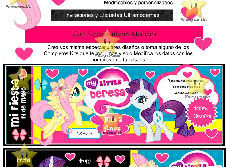 CON ESTE KIT TU MISMA (O) PUEDES CREAR TUS INVITACIONES Y COTILLONES CON MOTIVO DE PONY E IMPRIMIRLOS